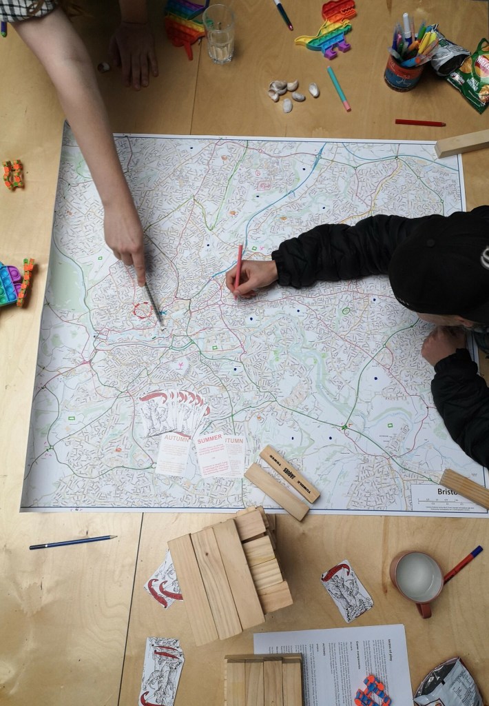 Described as a ‘rehearsal for the revolution,’ A Restless Year (2023) is a hack of Avery Alder’s map-drawing game The Quiet Year. In A Restless Year, you are invited to collectively imagine a city in the immediate aftermath of a revolution. Through storytelling and discussion, the players are invited to imagine the victories and challenges of collective liberation.